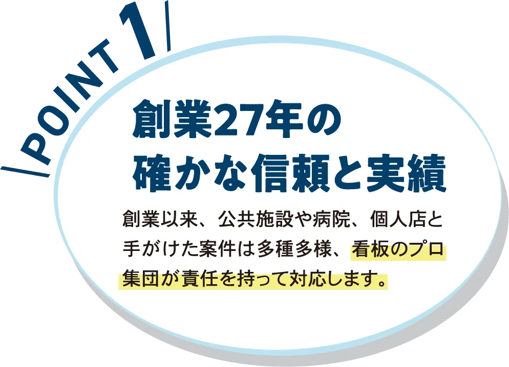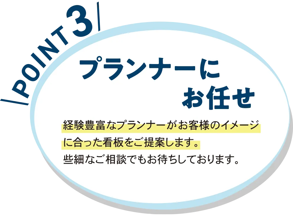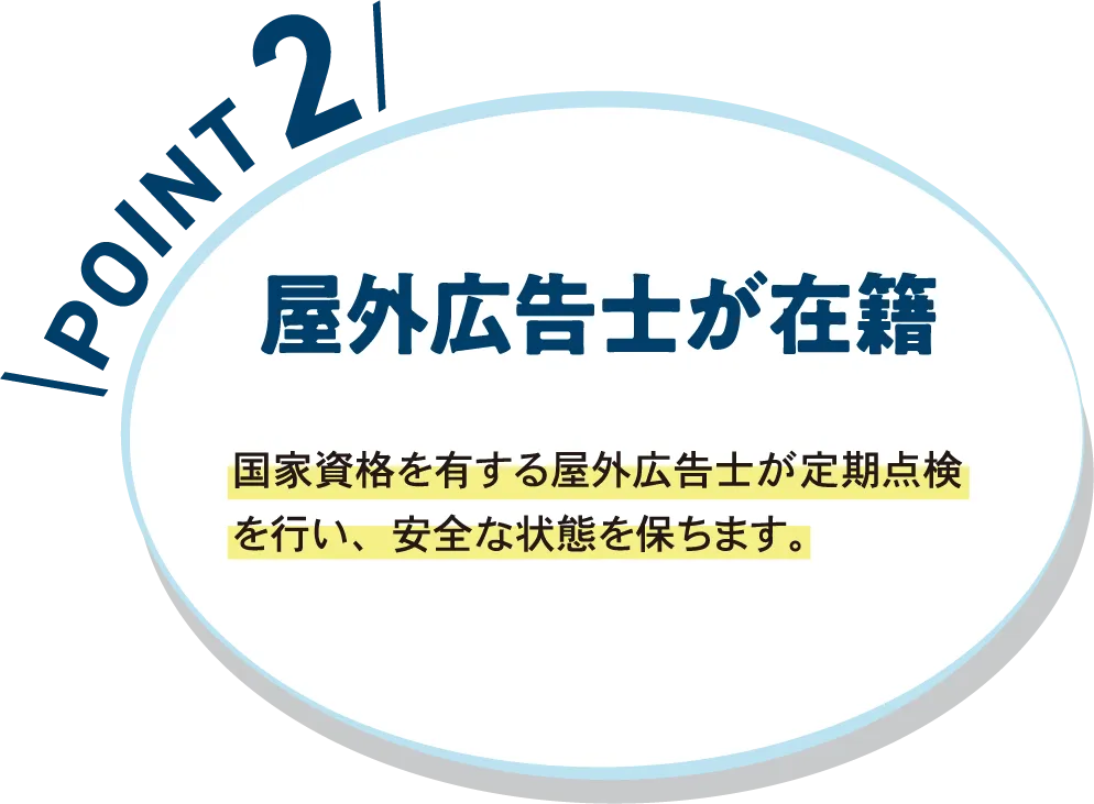 看板の大きさも考慮し、基礎・支柱・アンカーボルトを使用した仕様をご提案します。設置後の点検も承ります。
